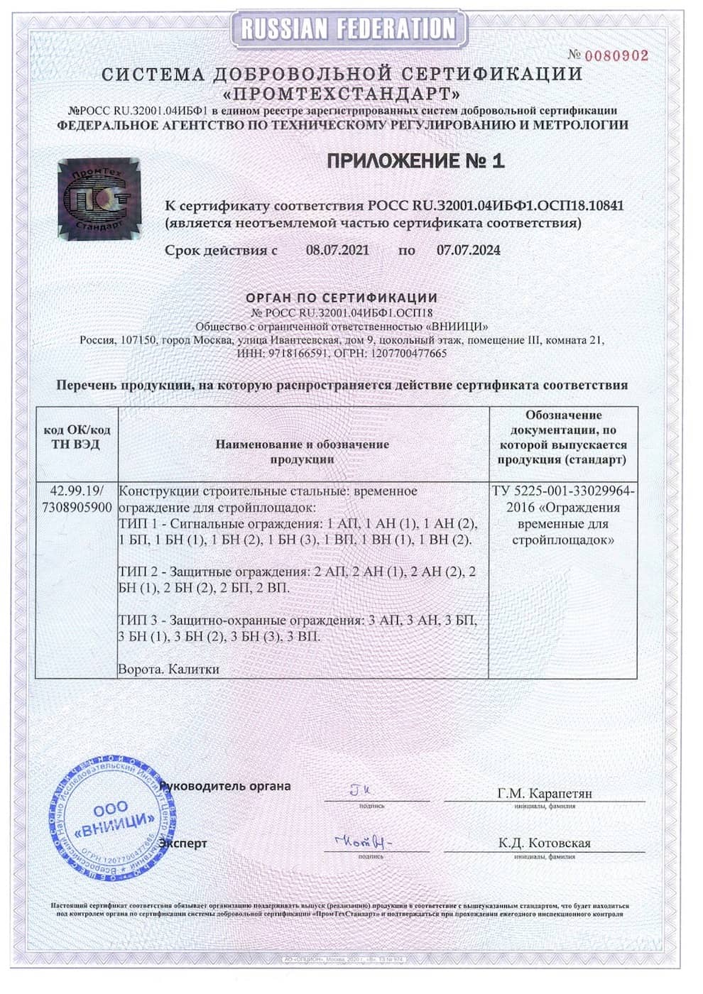 Ограждение строительное временное 2 ВП сигнальное